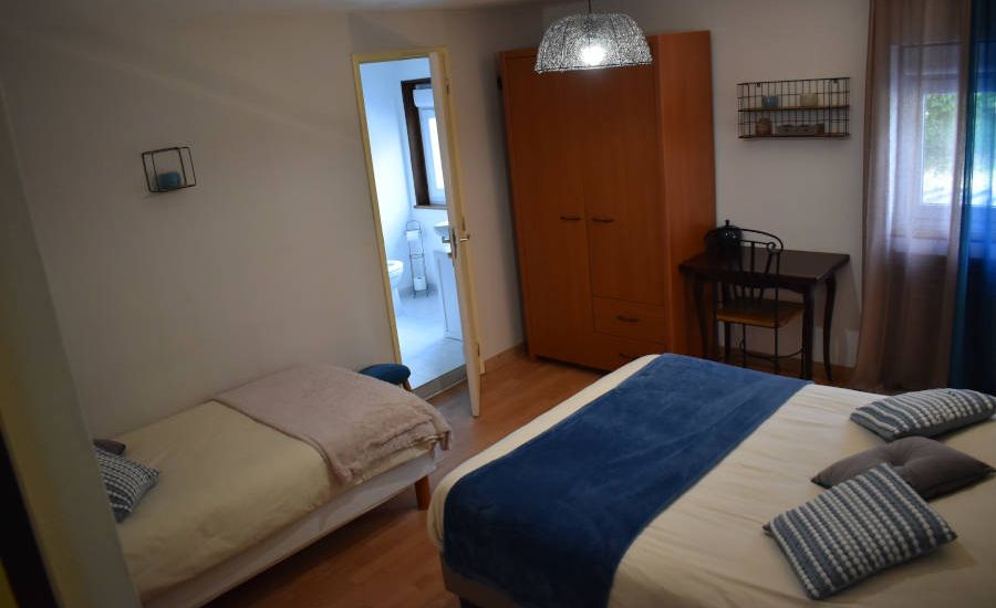 C’est une chambre parentale pour 4 qui convient aussi bien à 1 couple avec 2 enfants qu’à 2 couples d’amis. Un sas d’entrée sépare les deux espaces, chacun avec sa porte individuelle. Chaque espace possède sa salle de bain, équipée d’une douche, d’un lavabo et d’un wc.