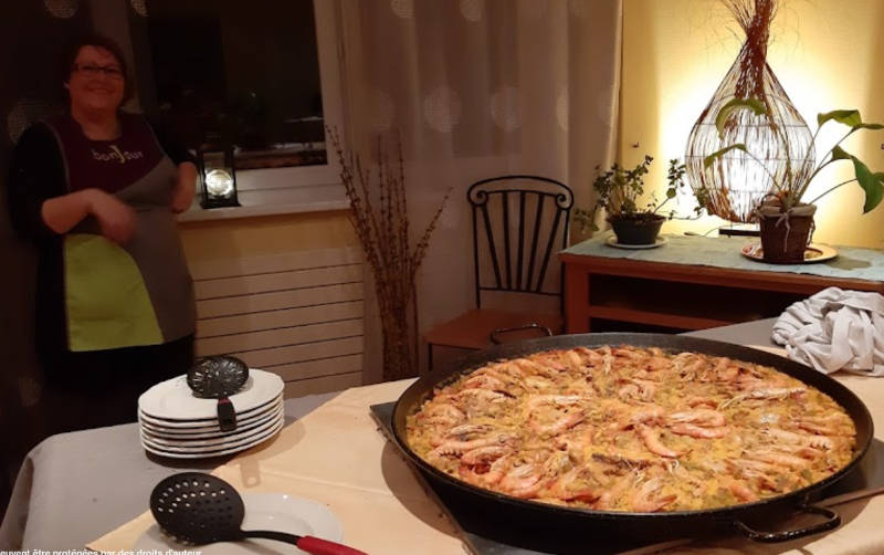 Rose-Marie est d’origine espagnole et la spécialité de la maison est incontestablement la paella ! Nous vous accueillons avec une sangria, l’apéritif espagnol traditionnel, accompagnée de délicieuses tapas à déguster du bout des doigts. Place ensuite aux choses sérieuses, avec la paella, cuisinée bien sûr, dans la plus pure tradition espagnole. Elle est servie généreusement, avec repasse possible pour les gourmands. Glaces ou vacherins terminent ce copieux repas.